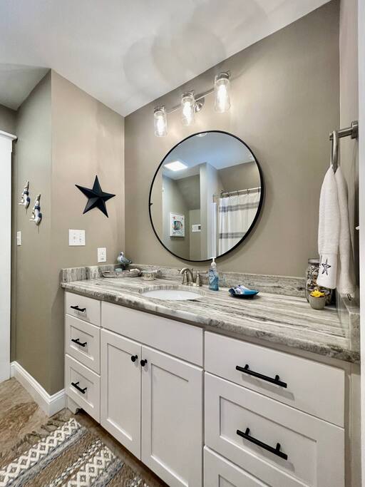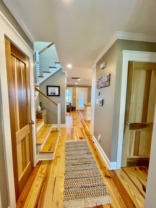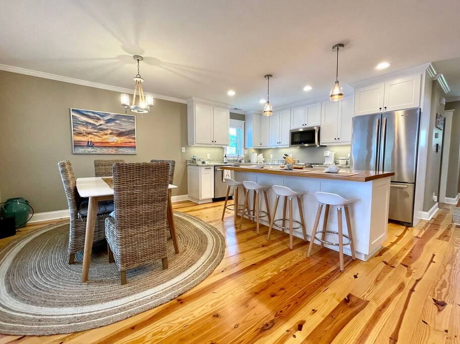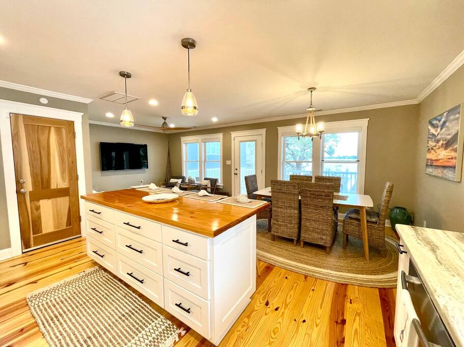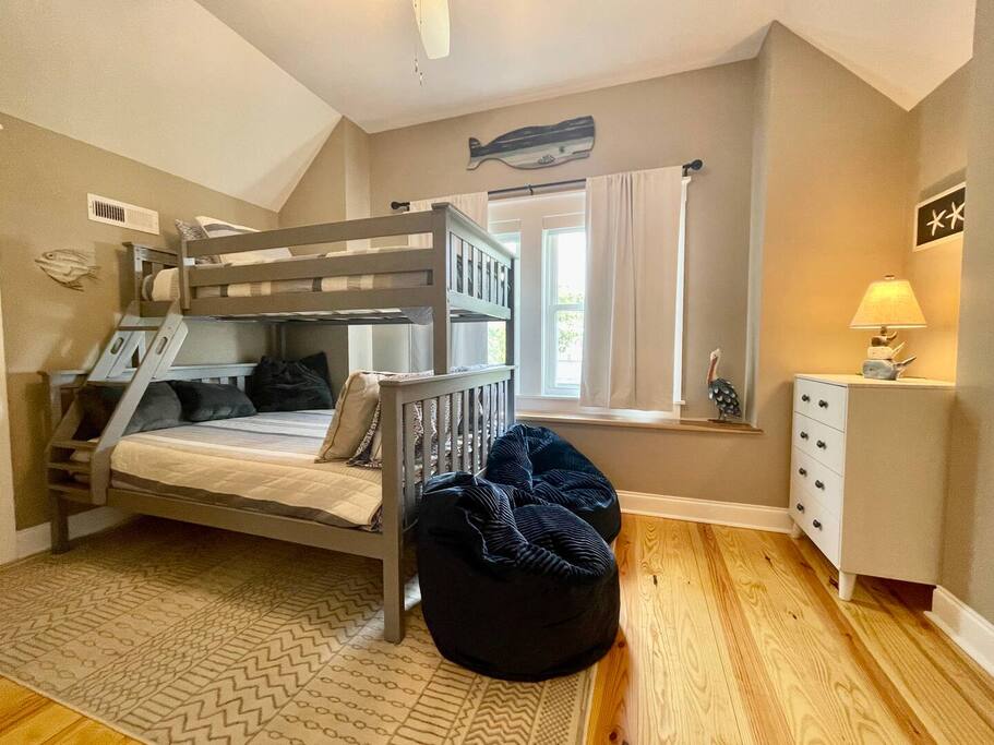 Key Features ☀ Sleeps up to 7 guests ☀ 3 bedrooms, 2.5 bathrooms ☀ Private boat dock with lift & bulkhead access ☀ Open-concept living space with hardwood floors ☀ Large outdoor decks overlooking the river ☀ Fully stocked kitchen + cozy gathering spaces ☀ Free parking for 3 cars ☀ Kid friendly (bunk bed room, safe outdoor area) ☆☆ BEDROOMS ☆☆ Primary Bedroom (2nd floor): King-size bed, vaulted ceiling, private access to the large riverside deck. Spacious and serene, with plenty of natural light. Bedroom 2 (2nd floor): Queen-size bed, shared bathroom access, comfortable and cozy for couples or solo travelers. Bedroom 3 (2nd floor / loft area): Bunk + twin bed setup (sleeps 2–3), ideal for kids or extra guests—fun and functional. ☆☆ BATHROOMS ☆☆ You have 2 full bathrooms and 1 half bath. The full bathrooms include showers (one may have tub/shower), and are stocked with body wash, shampoo, conditioner, fresh towels, and essential toiletries. The half bath is located near the common living area for guest use. ☆☆ KITCHEN & RELAXING AREAS ☆☆ The kitchen is fully equipped with stainless appliances, cookware, utensils, full-size refrigerator, microwave, coffee maker, and dining essentials. The open layout flows into a warm and welcoming living room with seating, natural light, and views of the water. A bonus bunk-bed room doubles as a comfy nook for reading or relaxing. ☆☆ OUTSIDE SPACE ☆☆ Step outside to expansive decks overlooking the river—ideal for morning coffee or evening cocktails. The home includes a private dock and boat lift, giving guests direct access to the water. The yard is fenced and well-maintained, perfect for children to play. Ample outdoor seating and a covered porch area invite you to breathe in the waterfront ambiance. ☆☆ PARKING & ACCESS ☆☆ You’ll have free parking for up to 3 vehicles (open/covered). The property includes a private driveway and convenient street access. ★☆ Book Today & Let Us Take Care Of You ☆★ Leave your worries behind—your riverside escape awaits. Whether you’re here to relax, explore New Bern, or enjoy boating and watersports, this home offers it all. Reserve your dates now for a stay that feels like coming home.