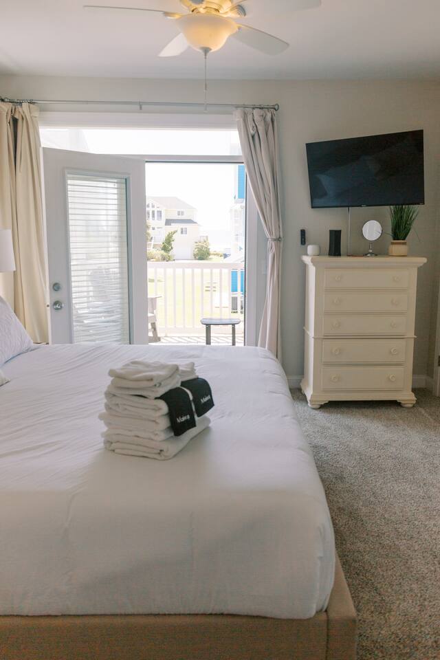 KEY FEATURES: ☀ Beach Retreat: Experience unparalleled beachfront living with stunning views of the majestic Atlantic Ocean from multiple private decks, perfect for relaxation and enjoyment. ☀ Family-Friendly Accommodations: This spacious home caters to families and couples alike, featuring a luxurious King Suite on the first floor, three bedrooms on the second floor, and ample communal space on the top floor for gatherings. ☀ Sleeps 8; 4 bedrooms 3.5 bathroom, 2 king, 2 queen ☀ Fully Stocked Kitchen: Enjoy the convenience of a fully equipped kitchen, complete with pots, pans, utensils, and everything you need for cooking and dining with ease. ☀ Comfortable Living Areas: Relax in the cozy living room, featuring multiple seating areas, a large Smart TV, and plenty of space for bonding and entertainment. ☀ Beach Gear Provided: Make the most of your beach adventures with our complimentary starter kit, including beach chairs, a cooler, and beach toys for hours of seaside fun. ☀ Outdoor Grill: Host unforgettable BBQ gatherings with our charcoal grill and utensils provided, perfect for enjoying delicious meals al fresco on the deck. (Please bring your own charcoal.) Here Are A Few Kind Words From Our Past Guests: "This was a perfect house. Great location. Walking distance to beach. Fully stocked with so many extras from toiletries, family games, to the cleaning supplies. The beds were so comfortable. Clean. And when we needed to communicate with host, he was readily available for us every time. The pictures in listing is exactly what you get. Recommend reservations, at “Amos Mosquito” right down the street for a meal. And the restaurant, “Southern Salt” was another favorite we discovered . Wonderful stay. Would recommend." - Julie "The house was just as described! Very well-stocked, clean, great location! Michael was a great communicator. And we literally had no issues! I will definitely stay there again on my next trip to Atlantic Beach! Beautiful, clean, perfect for our family gathering!" - Anna "Our stay at this beach house was fantastic! We loved the location, furnishings, and amenities. The house was stocked with everything we needed, from beach toys and chairs to a high chair, bug spray, kitchen essentials and everything in between. Michael was wonderful at communicating with us, as well!" - Brittany "Our family loves Atlantic Beach. We had been here before and wanted to bring more family down to share the wonderful experience. We needed a house big enough and comfortable for 10 people. The location was perfect. The beds were cozy. Porches for all to enjoy with great views. Well stocked for our needs. And Michael was sure to check in with us to make sure everything was to our expectation. Great find!" - Jennifer ☆☆ BEDROOMS & BATHROOMS☆☆ Master Suite (1): Retreat to the opulent master suite, featuring a king-sized bed, breathtaking ocean views, and an en-suite bathroom with a luxurious bathtub and walk-in shower. Guest Bedrooms (3): Three additional bedrooms offer comfortable accommodations for your guests. Two King Bedrooms and One Queen Bedroom. Each bedroom boasts its own unique charm and stunning views of the surrounding landscape. Bathrooms (3.5): With 3.5 elegantly appointed bathrooms throughout the villa, you'll enjoy the utmost convenience and privacy during your stay. Immerse yourself in a spa-like experience with sleek fixtures, soft lighting, and luxurious amenities that will pamper your senses and soothe your soul. ☆☆ KITCHEN & LOUNGE ☆☆ The heart of the home, our fully equipped kitchen invites you to channel your inner chef and create culinary masterpieces with ease. Adorned with modern appliances, ample counter space, and sleek cabinetry, this gourmet kitchen is a culinary enthusiast's dream. Whether you're whipping up a hearty breakfast to fuel your adventures or preparing a gourmet feast to impress your guests, you'll find everything you need to satisfy your culinary cravings. Need groceries? No worries! A quick trip to the local market will provide you with fresh ingredients to elevate your creations. After a day of exploring the sandy shores and soaking up the sun, unwind in our stylish lounge area. Sink into plush sofas as you admire the mesmerizing views of the shimmering sea through expansive windows. Feel the gentle sea breeze dance through the room, creating a tranquil atmosphere that soothes the soul. Curl up with a good book from our selection or gather with loved ones for a movie night on the sleek flat-screen TV. With ample seating and tasteful decor, our lounge is the perfect spot to relax and reconnect with family and friends. ☆☆ OUTSIDE SPACE ☆☆ Step outside and immerse yourself in the beauty of coastal living. Our expansive outdoor space offers a private oasis where you can soak up the sun, breathe in the salty sea air, and marvel at the endless expanse of ocean stretching out before you. Lounge on comfortable patio furniture as you sip cocktails and watch the waves roll in, or gather around the fire pit for cozy evenings under the stars. With direct access to the beach just steps away, you can enjoy leisurely strolls along the shore or take a refreshing dip in the sparkling waters whenever the mood strikes. For your convenience, AB Sea View offers ample parking space for multiple vehicles, ensuring that you can easily come and go as you please during your stay. Whether you're driving your own car or renting a vehicle to explore the surrounding area, you'll never have to worry about finding a place to park. ★☆ Book Today & Let Us Take Care Of You In Atlantic Beach! ☆★