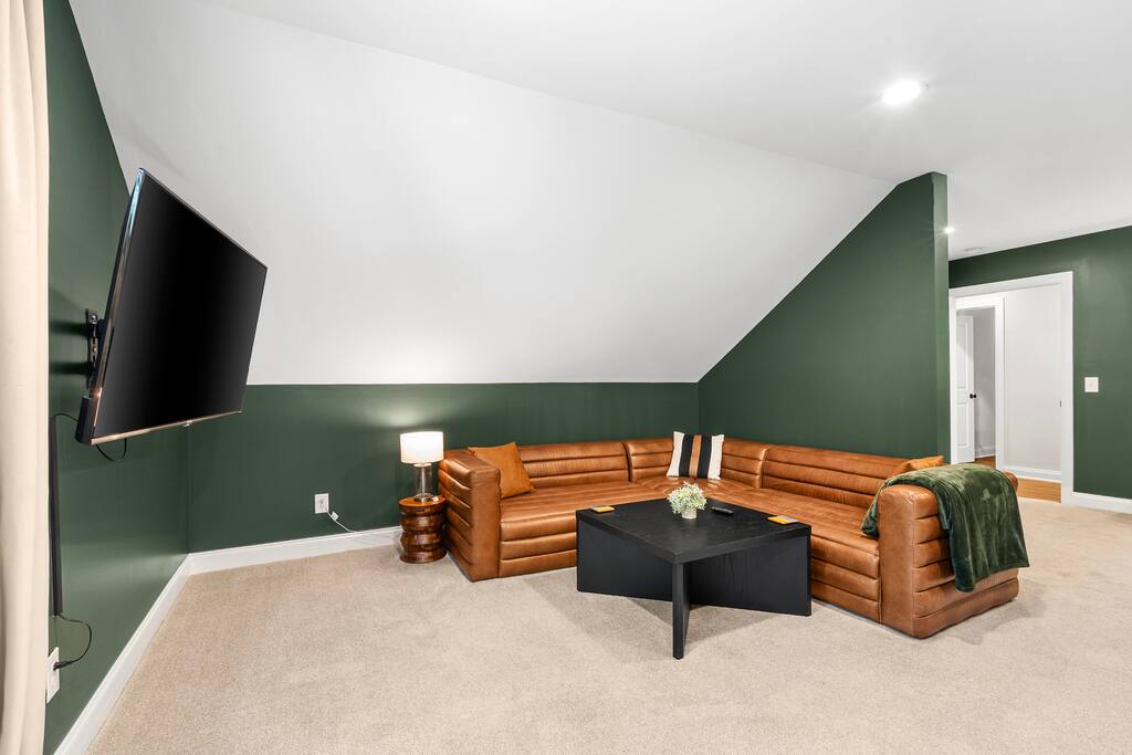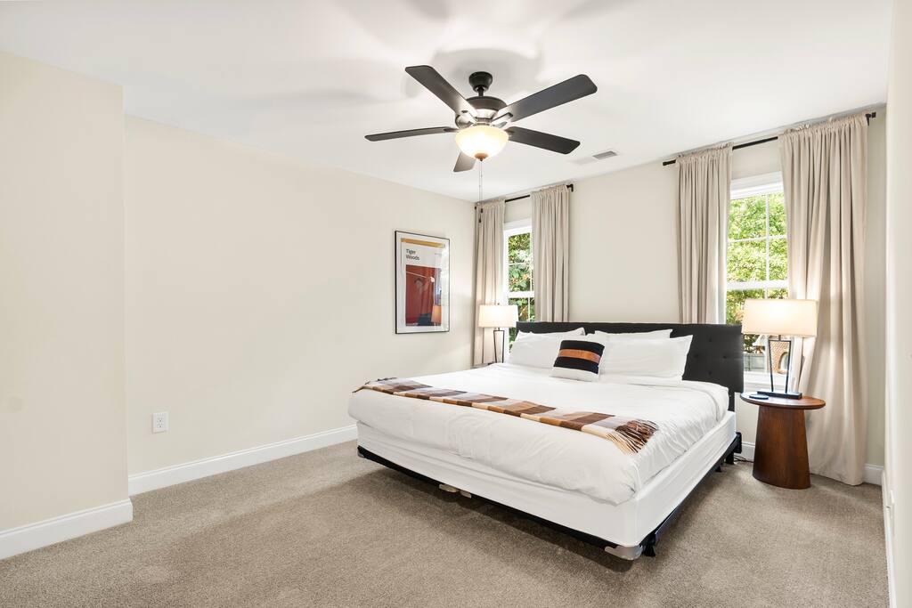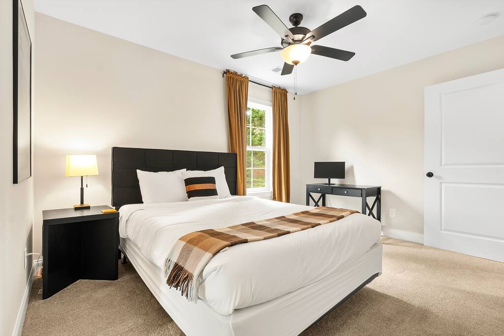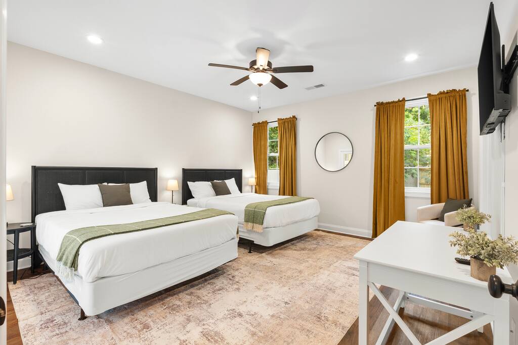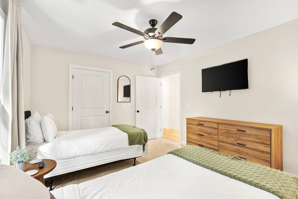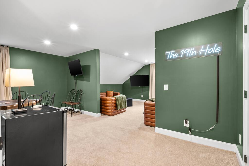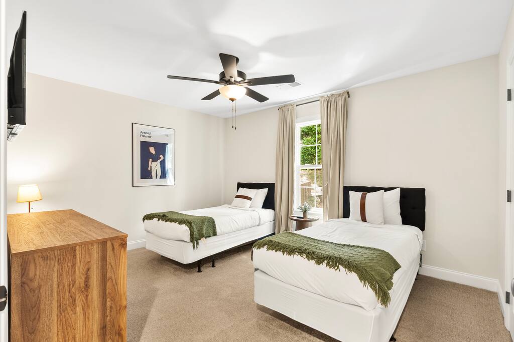 KEY FEATURES: ☀ 4 large bedrooms; 1 king, 3 queens, 2 singles, 1 bunk bed ☀ 2 full bathrooms and 1 half bathroom ☀ Brand new home with modern decor ☀ Full kitchen w/ Keurig and K-cups ☀ Serene backyard, patio w/ new BBQ grill ☀ Upstairs den with poker table and leather sectionals ☀ High-speed wifi, great for remote working ☀ 65” TVs w/ Sports Package ☀ Short drive to the renowned Pinehurst golf resort Here Are A Few Kind Words From Our Past Guests: “Great location, 5 minute drive to everything. House is awesome & has all the amenities needed for a comfortable stay. The 19th hole bonus room is an awesome place to relax & watch some football after a long day. Mike was super responsive & a pleasure to deal with.” - Vincent “Great spot for a golf group! Bonus room with dual TVs is the icing on the cake.” - Peyton “Excellent accommodations. Great house for a group to stay at, close to all the golf courses and town.” - Matthew “Beautiful home. Would stay there again. Plenty of space for our group of nine.” - Lillie ☆☆ BEDROOMS ☆☆ Experience true luxury in these four beautifully-designed bedrooms, with enough space to host your whole group. Upstairs you’ll find three sprawling bedrooms: our “Tiger Woods” room has a king-sized bed; “Arnold Palmer’s Room” has two single beds, and “Jack’s Room” has one queen bed and one twin bunk bed. On the main floor, the “Country Club Room” has two comfortable queen-sized beds, plus an ensuite bathroom and access to the patio. With luxury linens and bright decor, these immaculate spaces make it easy to rest and recharge after a busy day on the golf course. ☆☆ BATHROOMS ☆☆ Freshen up in one of the two full bathrooms, one on each level. The bathroom on the second floor has a shower/tub combination and a large vanity, with plenty of space to make yourself at home. The full bath on the main floor features a walk-in shower, a double vanity, and an enormous closet. Large groups especially will appreciate the main floor’s convenient half bath. ☆☆ KITCHEN & LOUNGE ☆☆ Prepare delicious meals in the large kitchen, equipped with everything you’ll need for your stay. You’ll love the modern design and open-concept layout. Enjoy a fresh cup of coffee from the Keurig (K-cups provided), or grab a Transfusion drink before heading out, perfect for keeping you hydrated on the golf course. In the separate dining area, the contemporary dining table can be extended to accommodate up to 10 guests. Share meals and laughs while reminiscing on the best plays of the day. This beautiful home’s spacious living room combines style and comfort, with its plush sofa, gas fireplace, and rich wooden floors. Relax in front of the flat-screen TV, or plan your next day using the high-speed WiFi. You’ll find the highlight of the house upstairs: our “19th Hole” relaxation room, soon to be your favorite space to unwind. Sprawl out on the sectional sofas and catch the latest sports game on one of three 65” TVs (Sports Package included). Poker fans will love the large poker table, all set up for you to win big. ☆☆ OUTSIDE SPACE ☆☆ There’s nothing like a good round of golf to make you hungry! Step out onto the large patio and grill your favorite meat or veggies on the brand new BBQ. With Adirondack chairs and a spacious yard, our outdoor space is the perfect place for guests of all ages to enjoy together. ★☆ Book Today & Let Us Take Care Of You In Pinehurst! ☆★