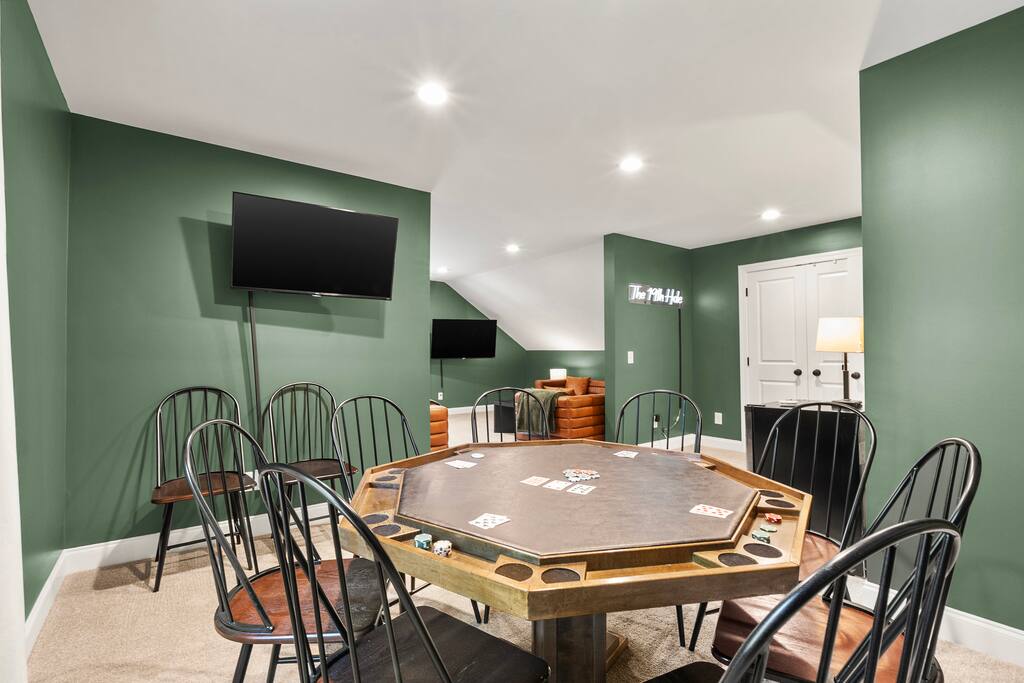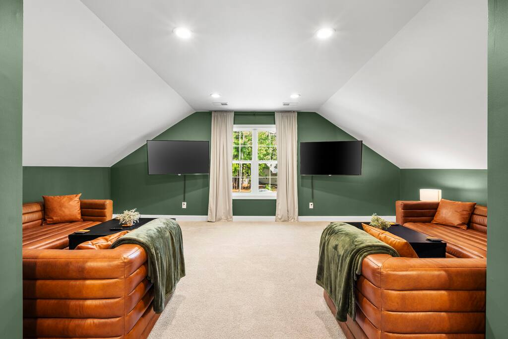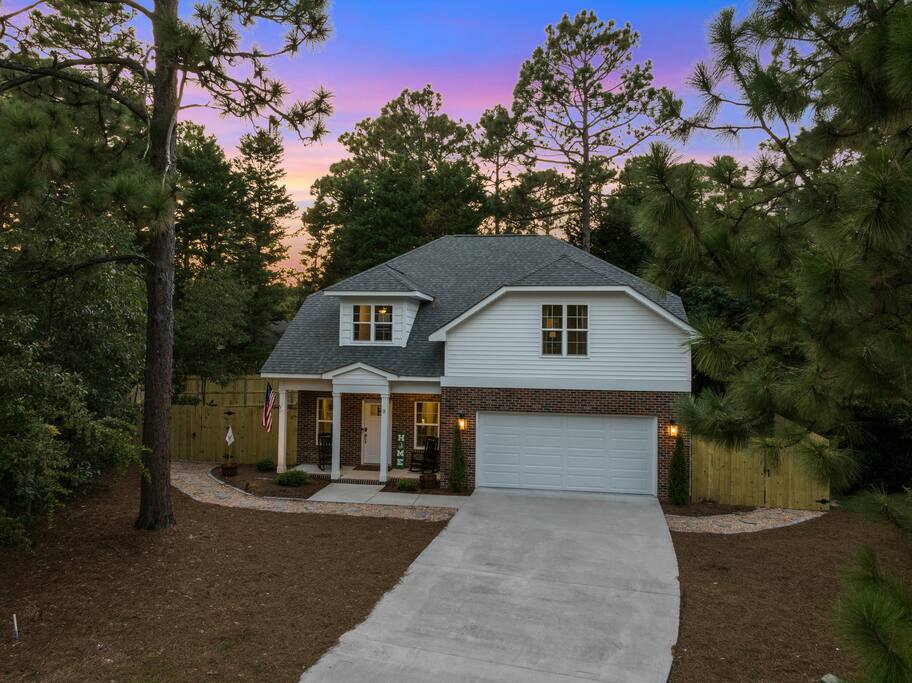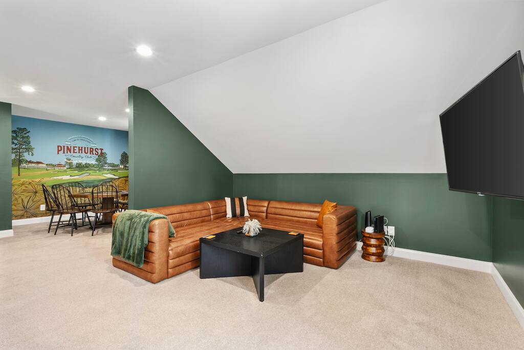 Grab the clubs and escape to a golfer’s paradise at this brand-new 4-bedroom home near beautiful Pinehurst. Perfect for golfing groups or families, the home boasts modern furnishings, a tranquil patio with BBQ, and an upstairs den with a poker table, 65” TVs, and leather sectionals. Ace those 18 holes, then recharge at The 19th Hole. 5 Min Drive to The Cradle Short Course 6 Min Drive to Pinehurst Village 12 Mins to Pine Needles & Mid Pines Golf Experience Pinehurst With Us & Learn More Below!