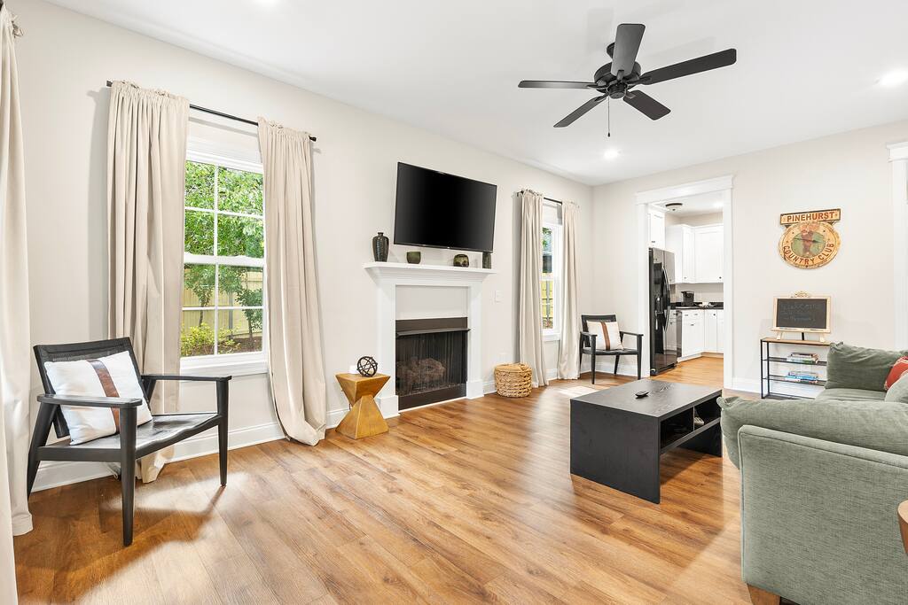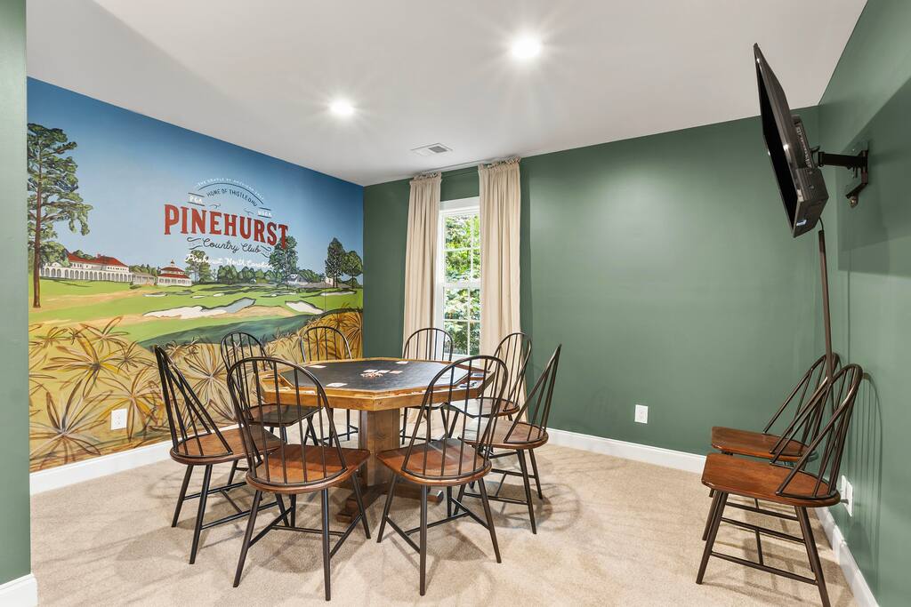 The 19th Hole is a great home for large groups, and guests will have full access to the entire home, including the backyard, patio, and in-unit washer and dryer (detergent provided). There is a high chair available for use, if needed. Enjoy self check-in using the Smart Lock. Free parking is available in the garage and on the driveway. 6 cars maximum This quiet neighborhood enjoys close proximity to several great golf courses, and it’s only a few minutes from the historic Pinehurst village.